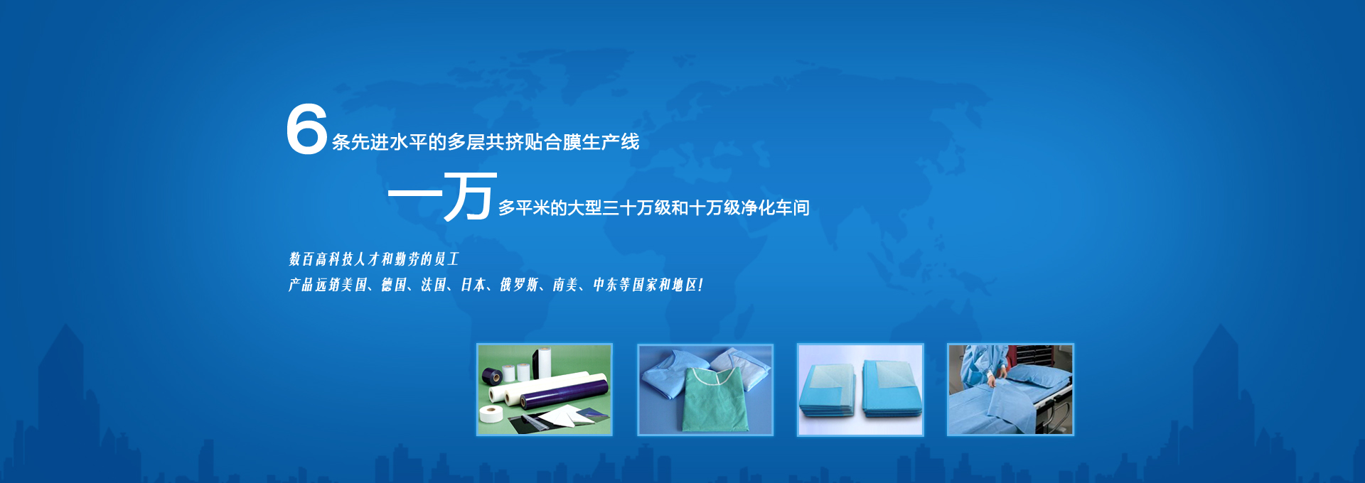 • 成立于1998年,專業(yè)從事醫(yī)用復(fù)合膜及一次性醫(yī)用耗材的研制和生產(chǎn),擁有六條先進(jìn)水平的多層共擠貼合膜生產(chǎn)線,40000多平米的大型三十萬(wàn)級(jí)和十萬(wàn)級(jí)凈化車間,擁有高科技人才和勤勞的員工,產(chǎn)品質(zhì)量一直處于領(lǐng)先水平,在國(guó)內(nèi)外享有很高的知名度,產(chǎn)品遠(yuǎn)銷美國(guó)、德國(guó)、法國(guó)、日本、俄羅斯、南美、中東等國(guó)家和地區(qū)。... 更多